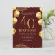 Elegant Gold Glitter Birthday 40th with Balloons Einladung