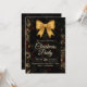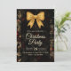 Elegant Gold Glitter Bow Dark Christmas Party Einladung