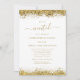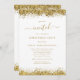 Elegant Gold Glitter Script White Christmas Party. Available digitally and printed. A touch of sparkle with faux glitter gold border is on each side top and bottom on a white background, and the word “invited” is in a stylish script with swashes. Keep the spaces each end of this text to maintain the swashes. Easily personalise the text to your own details. You can also change the text and background colors via the customise further option if you wish.