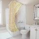 Eleganter Gold Glitzer Monogram Name Script Metallic Duschvorhang. Glitzer aus gebürstetem Metall mit moderner Typografie. Perfekte Wohngestaltung Badezimmer Dekoration.