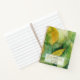 Eine elegante, zarte Zeitschrift für 2025 mit durchsichtigen goldgrünen und botanischen Blätter. Schrift und Spirale sind goldene Farbtöne. Erdiger und rustikaler Stil. Sie können diesen Gegenstand in weicher Abdeckung oder Hardcover bekommen.