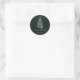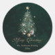 Add a festive touch to your holiday packaging with this elegant round sticker featuring a beautifully illustrated Christmas tree surrounded by gifts on a rich green background. Perfect for sealing envelopes, decorating gift bags, or adding a classic holiday accent to cards and wrapping.