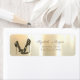 Hoher Absatz auf glänzendem goldfarbenem Hintergrund. Ein elegantes und raffiniertes Design.Costumize mit Ihrem Namen und Adresse Details.