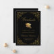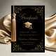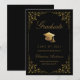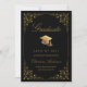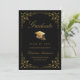 Schicken Sie Ihren Freunden und Ihrer Familie diese elegante Abschluss-Ankündigungskarte, um sie zu verwöhnen. Dieses Design zeigt Imitate goldene Grade Mütze und Drehbuch auf einem schwarzen Hintergrund gerahmt mit einem Imitat goldene filigrane botanische Grenze. Personalisieren Sie mit Ihren eigenen Angaben, Name, Schule und Jahr. Entworfen von Susan Coffey.