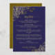Elegant Gold Lace Frills on Navy Blue Wedding Menükarte