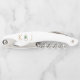 Diese eleganten, individuellen Korkschrauben verfügen über Ihre mit Monogramm Initialen, um in Imitaten Gold zu personalisieren, verbunden mit einem goldenen Ampere und mit handgemalten, weißen Aquarellfarben-Blume und Grün. Glückwunsch auf Ihre Hochzeit und beste Wünsche! .Es ist ein einzigartiger Gefallen, um Hochzeitsgäste zu beherbergen oder den Neuvermählten als Geschenk zu schenken. Entworfen von der Künstlerin Susan Coffey.