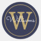 Elegant Gold Monogram Script Name Navy Blue Runder Aufkleber