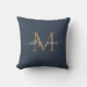 Elegant Gold Monogram Script Names Wedding Blue Kissen