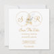 Elegante Gold Monogram Bride Groom Name Hochzeit speichern Sie die Datumskarte. Teilen Sie Ihre besonderen Momente stilvoll mit Ihrer Familie und Ihren Freunden. Einfach sowohl die Kartenvorder- als auch die Kartenrückseite mit Ihren individuellen Save the Date Informationen anpassen. Bestelle noch heute!