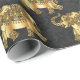 Elegant Gold Paisley Floral Elephant, Black Damask Geschenkpapier