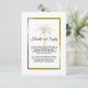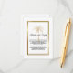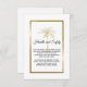 Mit dieser eleganten Gehäusekarte mit moderner Schrift, schwarzem Text mit einer goldenen Palme aus kunstvoller Gold, Metallrahmen aus Gold und weißem Rahmen an der Vorderseite der Karte, erhalten Sie alle Hochzeitsprotokolle für Gesundheit und Sicherheit. Auf der Rückseite befindet sich ein weißer, koordinierender Hintergrund.