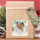 Elegant Gold Script "Merry Christmas" Calligraphy One Family Photo Merry Christmas Holiday Large Sticker with a little heart motif accent, family photo, name and year template. Great for Mailing Accessories Envelope Seals and Gift Stickers.