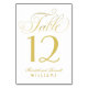 Jede Tischnummer muss individuell angepasst und in den Warenkorb aufgenommen werden. Das elegante Design aus Weiß und Gold zeichnet sich durch ein wunderschönes Drehbuch mit einem goldenen Farbverlauf und einem Hochzeitsmonogramm aus, das mit der Tischnummer auf beiden Seiten der Karte erscheint (zweiseitiges Design).