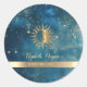 Elegant Gold Sun Stars Blue Watercolor Runder Aufkleber