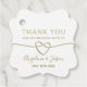 Mit diesem eleganten goldenen Gastgeschenk Hochzeit-Tag, das ein zartes, miteinander verwobenes Herzdesign und einen individuell gestaltbaren Text bietet, bedanken wir uns bei Ihren Gästen. Dieses elegante, geschmeidige Tag fügt Ihrer Hochzeitsempfehlung eine herzliche und raffinierte Touch hinzu, um sich an Geschenke, Gläser oder Geschenke zu gewöhnen. Einfache Personalisierung mit Namen und Hochzeitsdatum. Ideal für moderne, minimalistische, romantische oder klassische Feiern.
