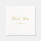 Elegante goldfarbene und weiße Servietten aus Hochzeitspapier. Fügen Sie einfach Ihre persönlichen Daten hinzu.