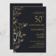 Diese elegante, schwarze und goldene Blütenjubiläumseinladung zum 50. Hochzeitstag kann mit Ihren Informationen in der modernen Goldtypografie personalisiert werden. Entwickelt von Thisisnotme©
