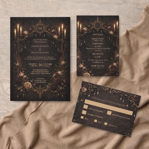 Elegant gothic halloween wedding begleitkarte