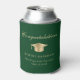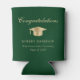 Toast den Absolvent auf ihrer Abschlussfeier mit diesem eleganten grünen kann kühler mit einem goldenen Gradmütze, "Glückwünsche" in einem klassischen Drehbuch und den Namen, Schule und Klasse Jahr des Absolventen in der modernen Typografie.