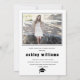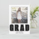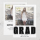Elegante GRAD-Klasse von 2025 Abschluss Foto Einladung. Das Design strahlt Raffinesse aus, mit der kühnen und prominenten Anzeige von 'GRAD' in schwarzer Typografie vor einem sauberen, weißen Hintergrund. Der Name des Absolventen und ein sorgfältig erfundenes Foto schmücken die Vorderseite und kontrastieren wunderbar mit dem Weißen. Dreh auf die Rückseite für ein anderes Foto und Raum, um deinen eigenen personalisierten Text hinzuzufügen.