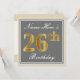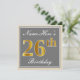 Elegant, grau, Imitate Gold 26. Geburtstag + Name Einladung