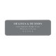 This return address label features a minimalist design with centered text on a solid gray background, creating a modern and elegant look. The layout is simple and balanced, utilizing ample negative space to emphasize the typography, which includes bold serif fonts for names and lighter weights for addresses and zip codes. The muted gray color palette adds sophistication, making it perfect for formal correspondence or special occasions. Its clean lines and precise alignment ensure clarity and a refined aesthetic, ideal for those who appreciate understated elegance in their stationery.