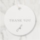 Elegante Hochzeitsfavoriten-Tags mit klassischem Design, mit dem Monogramm in einem Script-Schriftart und "Danke" in einem klassischen Serif-Schriftart.