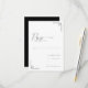 This elegant RSVP card features a minimalist design with ample white space, creating a clean and sophisticated look. The grayscale color palette includes black text and light gray decorative accents in the corners, adding subtle visual interest. The layout is vertically oriented, with a stylish cursive script for "RSVP" and simple sans-serif fonts for clear instructions, ensuring both formality and readability. Perfect for formal events, this card conveys an understated sophistication, making it ideal for weddings or upscale gatherings.