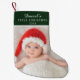 Elegant Green Baby Photo Custom Name Small Christmas Stocking.