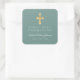 Elegant Green Cross Boy First Communation Quadratischer Aufkleber