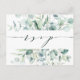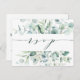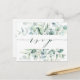 Diese Hochzeitspostkarte mit RSVP ist mit einem Aquarell Eukalyptus, botanischem Grün und hellblauen Blätter mit stylischer Kalligrafie versehen.