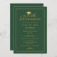 Senden Sie Ihren 25. Klasse Wiedersehen-Klassenkameraden unsere elegante Einladung mit einer flachen Karte mit einem grünen Hintergrund und Imitate Gold-Script-Typografie mit einem goldenen Graduierungspapier. Personalisieren Sie Ihre Wiedersehen-Daten. Entworfen von ©Susan Coffey.