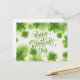Celebrate the luck of the Irish with this stunning and elegant St. Patrick's Day postcard. The design features a beautiful arrangement of vibrant green clovers and shamrocks dancing amidst shimmering gold glitter and delicate bokeh dots. A graceful, handwritten-style "Happy St. Patrick's Day" script takes center stage, making it the perfect choice for sending heartfelt holiday wishes to friends and family. This sophisticated and festive card is a lovely way to share a bit of Irish charm and brighten someone's mailbox this March.