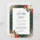 This elegant green and gold Christmas party invitation featuring gold glitter, poinsettia flower, holly with red berries and conifer branches is perfect for Christmas parties, holiday soirees, corporate events, holiday cocktail parties and more. Easily personalize this invitation with your party details.
