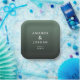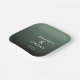 This elegant wedding plate features a sophisticated gradient background transitioning from soft mint to deep forest green, creating a calming and natural aesthetic. The design showcases clean, modern typography with centered names and details in a minimalist sans-serif font, emphasizing clarity and simplicity. Perfect for formal occasions, the understated elegance of this plate makes it an ideal choice for weddings or upscale events, capturing a mood of refined sophistication without any additional motifs or embellishments.