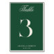 Create your own custom wedding table number cards in a luxurious old money style. Add your wedding details in elegant, timeless typography featured here in green color design.