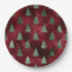 Elegant Green Trees Red Faux Foil Christmas Pappteller