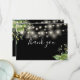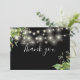 Eine elegante eukalyptus grün botanische Saitenleuchten bedanken sich Karte, personalisiert mit einer besonderen Nachricht auf der Rückseite auf einem schwarzen Hintergrund. Entwickelt von Thisisnotme©