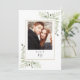 Diese elegante grüne Eukalyptus verlasse die Tischnummer mit zarten Aquarellfarben-Blätter mit Ihrem besonderen Foto, gerahmt durch eine goldene Grenze. Entwickelt von Thisisnotme©