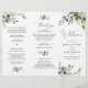 Dieses maßgeschneiderte Zeremony-Programm wurde für die Koordination mit unserer Hochzeitskollektion Boho Greenery konzipiert. Es verfügt über Eukalyptuszweige in Aquarellfarbe mit einem klassischen Serif-Schriftart und eleganten Kalligrafien. Matching-Elemente verfügbar.
