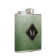 Elegant grün gebürstet mit einfachem Goldmonogramm Flachmann