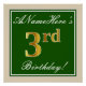 Elegant, grün, Imitate Gold 3. Geburtstag + Name Poster