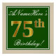 Elegant, grün, Imitate Gold 75. Geburtstag + Name Poster