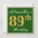 Elegant, grün, Imitate Gold 89. Geburtstag + Name Einladung