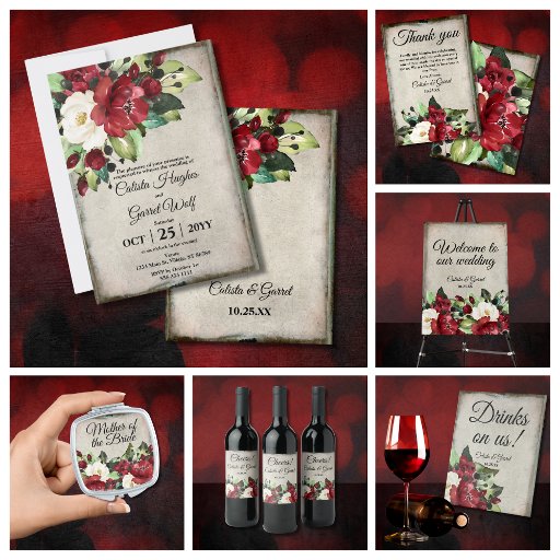 Elegant Red Floral Grunge Wedding StationeryDesignt von Amazing Beautiful Creative Designs