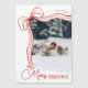 An elegant and minimal family photo Christmas card featuring a whimsical hand-drawn red and white bow and script font. This modern magnetic holiday card in simple yet festive color palette is perfect for sharing warm season’s greetings, Merry Christmas wishes, and custom holiday messages with friends and family in style.
