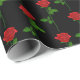 Elegant Hand-Drawn Rose Wrapping Paper on Black Geschenkpapier