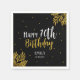 Elegant Happy 70th Birthday Gold Foliage Party Napkins. An elegant gold foliage on a black background. Add your name and age, and make your own birthday party napkins.