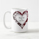 A decorative heart-shaped card featuring a burgundy border, pink floral accents, and two red roses, perfect for romance, weddings, or Valentine’s Day greetings.