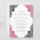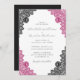 Elegant Hot Pink and Black Floral Lace Wedding Einladung